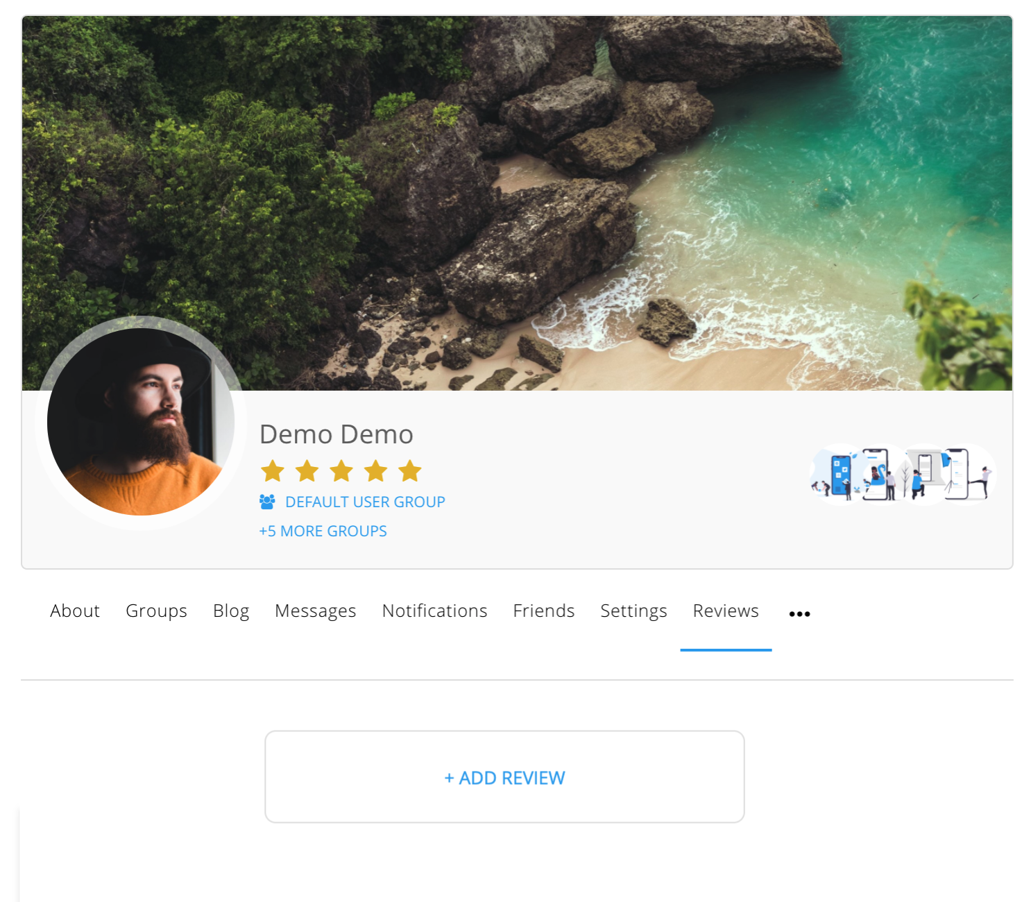 Once you’ve added your extension, check how the review tab, reviews, and ratings will look like on your profile.