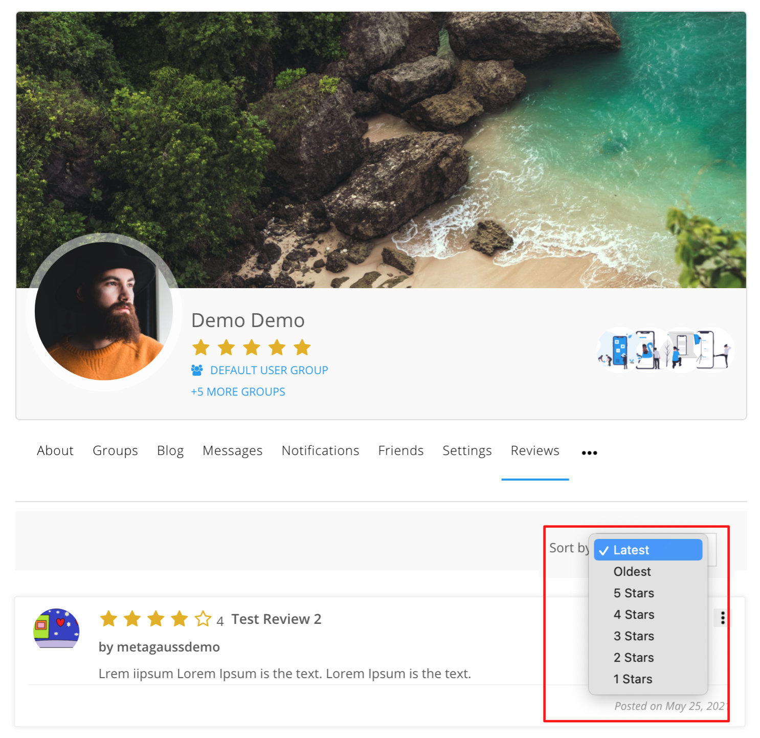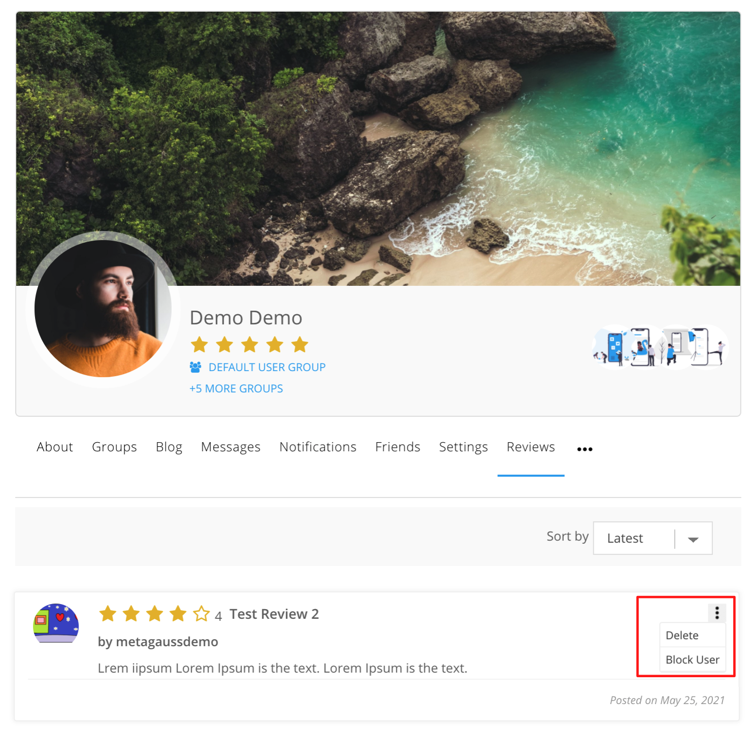 ProfileGrid Member Profile Reviews extension is the best solution to add a user review system on any website. It empowers your website members to rate and review products, groups, or even the profiles of other members of different groups.