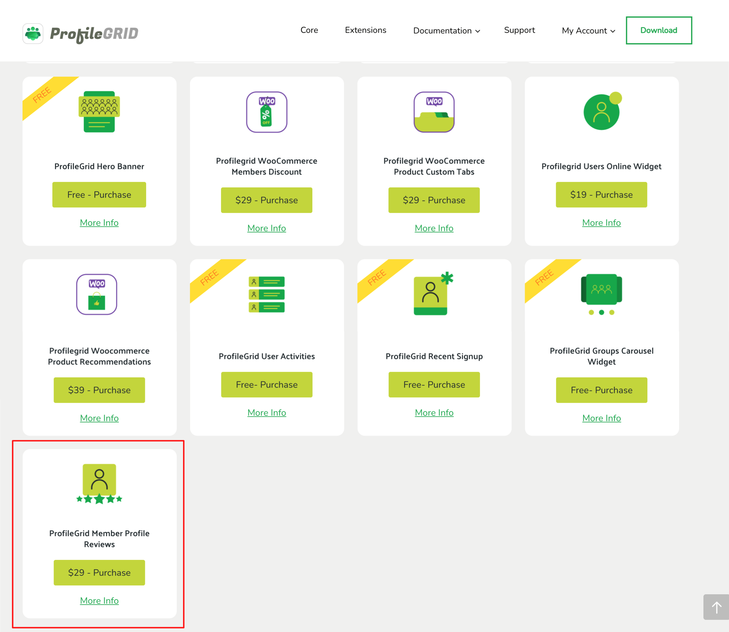 1. Firstly, go to the all extensions page of ProfileGrid Plugin.
