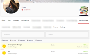 Above we see a frontend view of the user profile where our created tab ‘Job Openings’ has appeared. By clicking on this tab we will get a view of the entire job listing. This listing has been earlier created in the backend.
