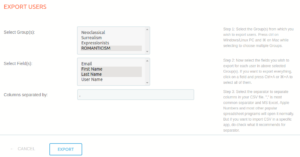 Export Users allows for exporting of one or more existing ProfileGrid groups, with required fields to a CSV file: