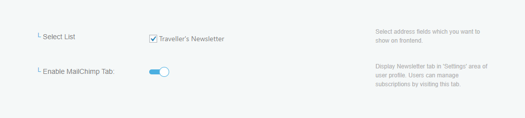 - Allows Users to subscribe or unsubscribe to MailChimp lists from their Profile pages whenever they want to.