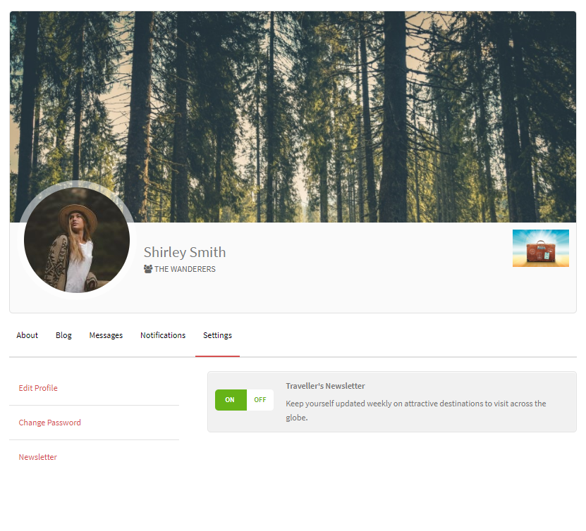 - Allow existing Users to subcribe to a MailChimp list from their Profile pages (under the 'Settings' tab).
