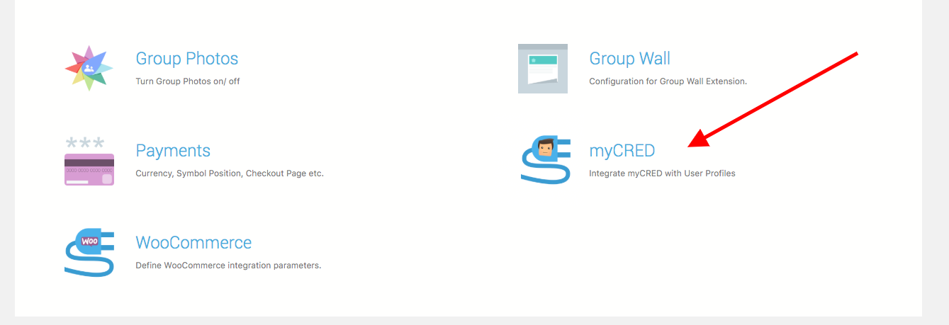 - Award myCred points to users based on various levels of activity on the site. Such as...