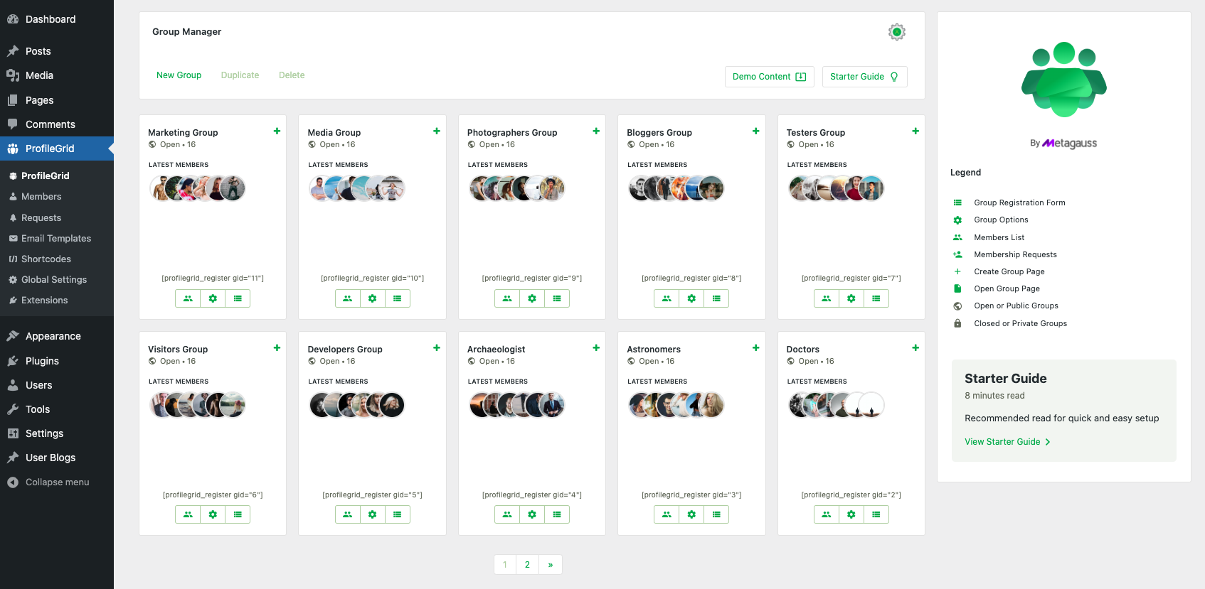 ProfileGrid Demo Content Overview