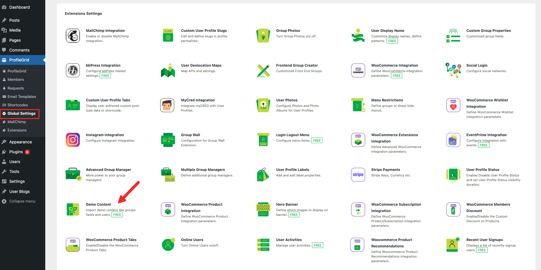 - Allows the admin to import demo data for ProfileGrid.