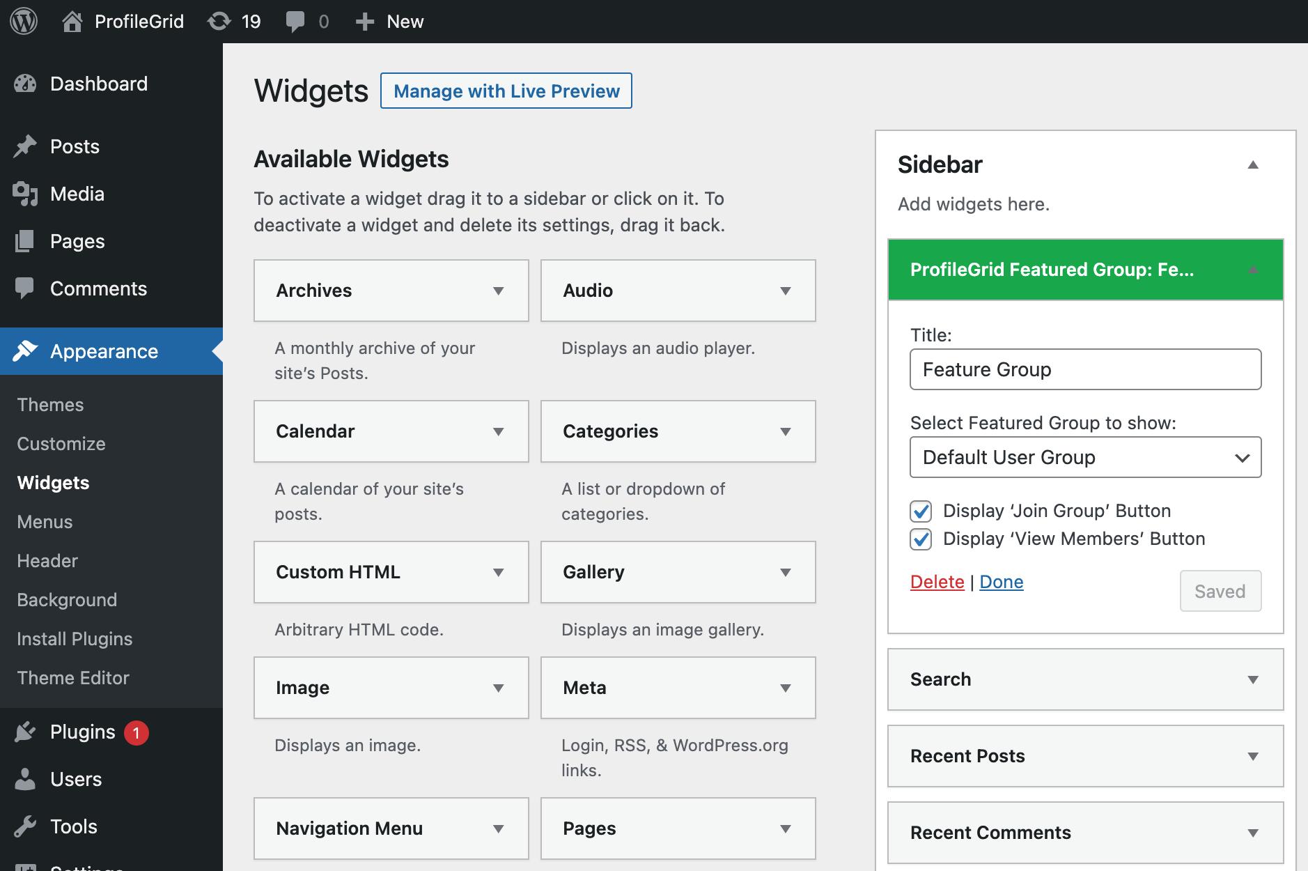 A customizable frontend ProfileGrid Widget that allows you to display featured membership groups.