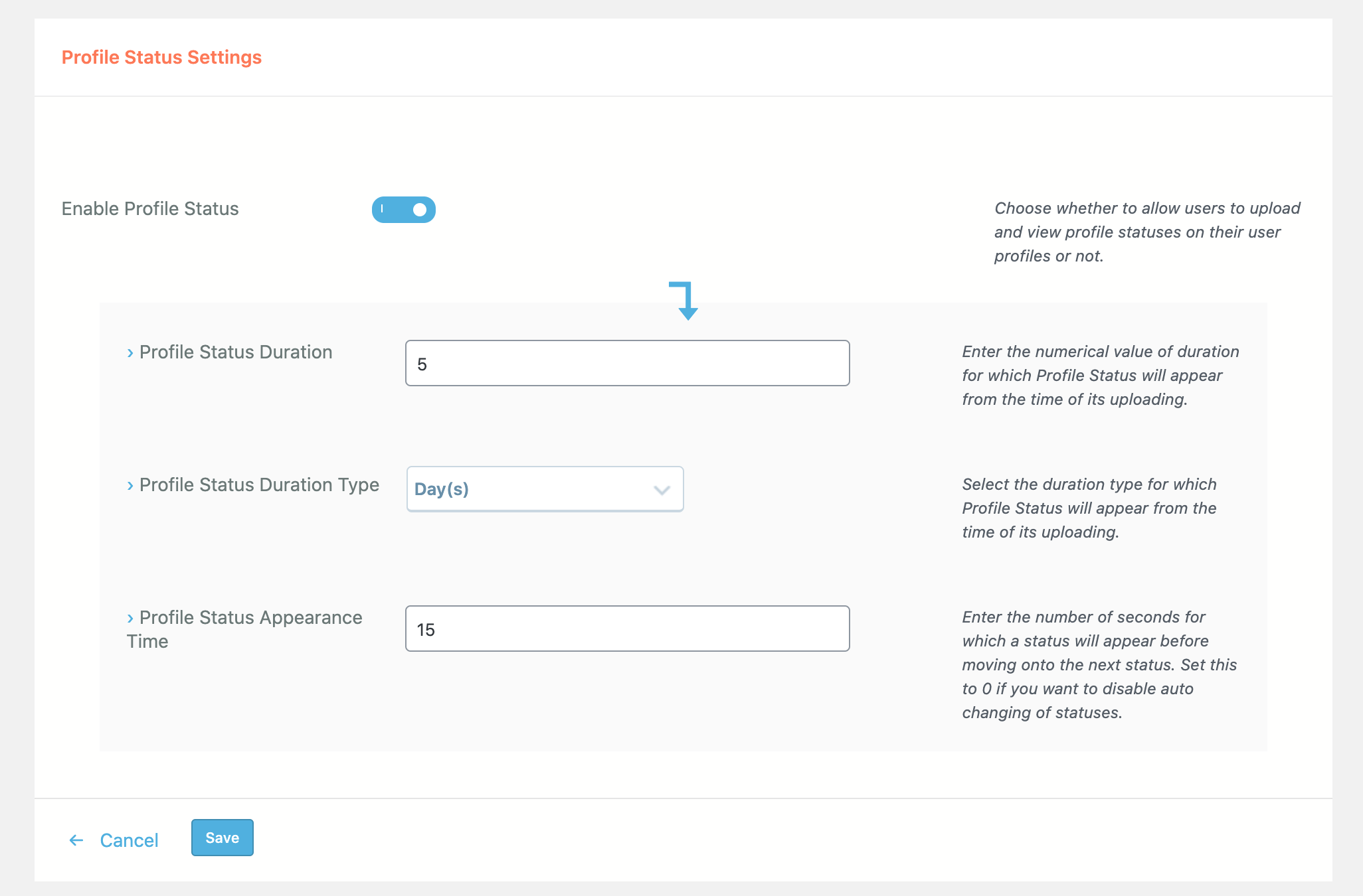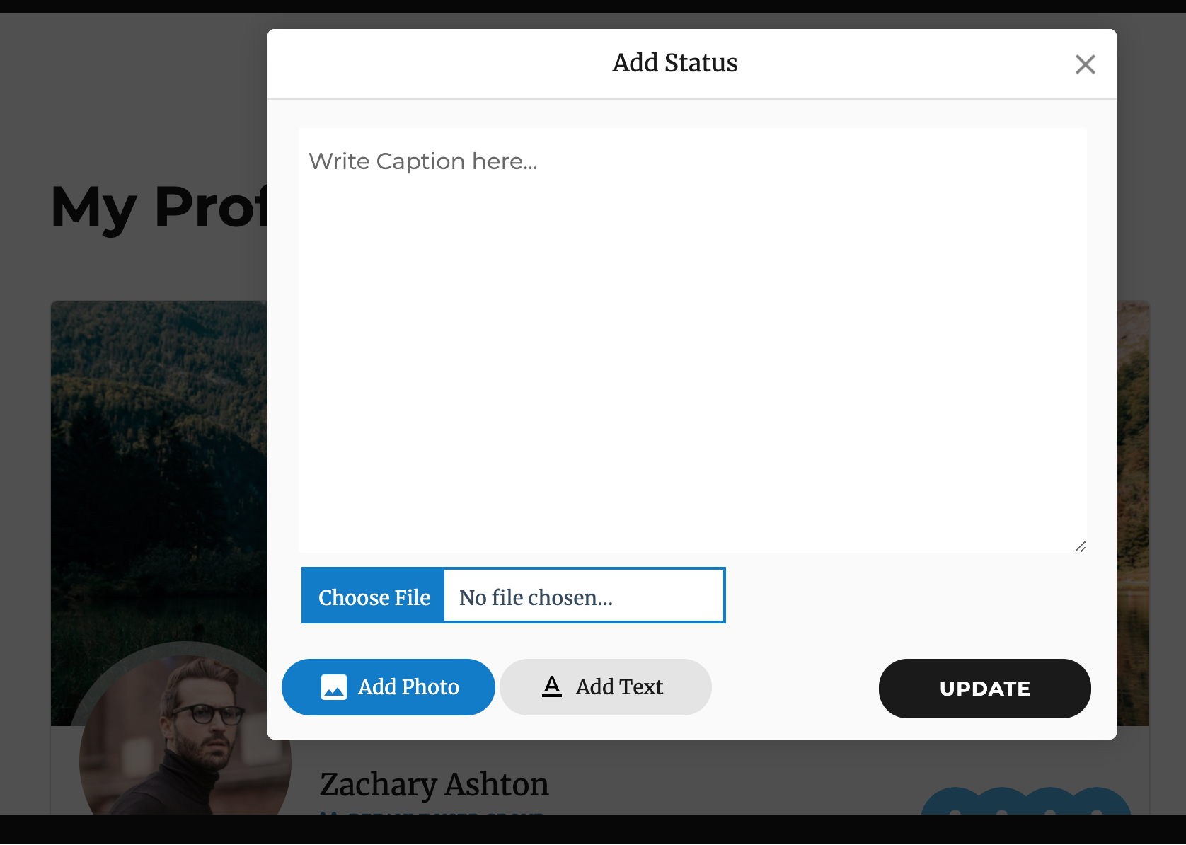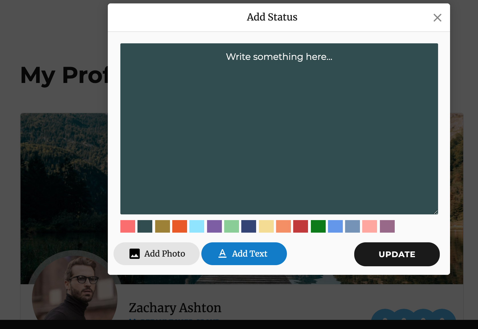 Now users can upload statuses to their user profiles. Users can view statuses on their own profiles and other users' profiles.