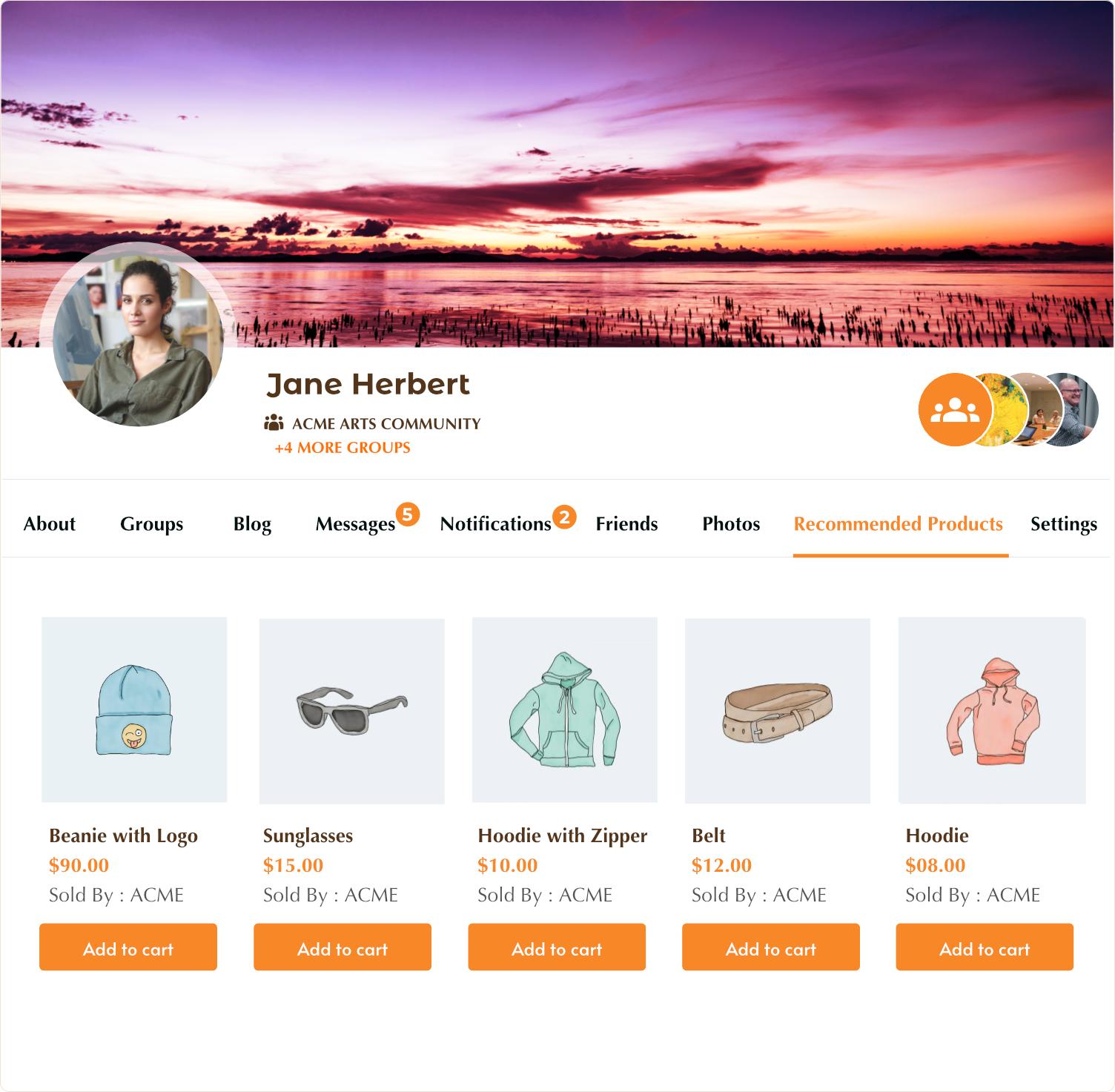 Display product suggestions right inside user profiles based on the user’s purchase history.