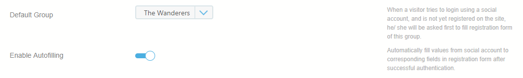 - Allows you to set a default group the user will join automatically after registering through a social network profile