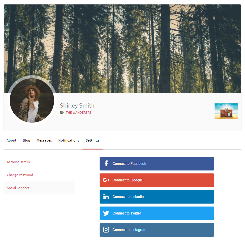- Shows connected social networks on the ProfileGrid profile Under the 'Settings' tab