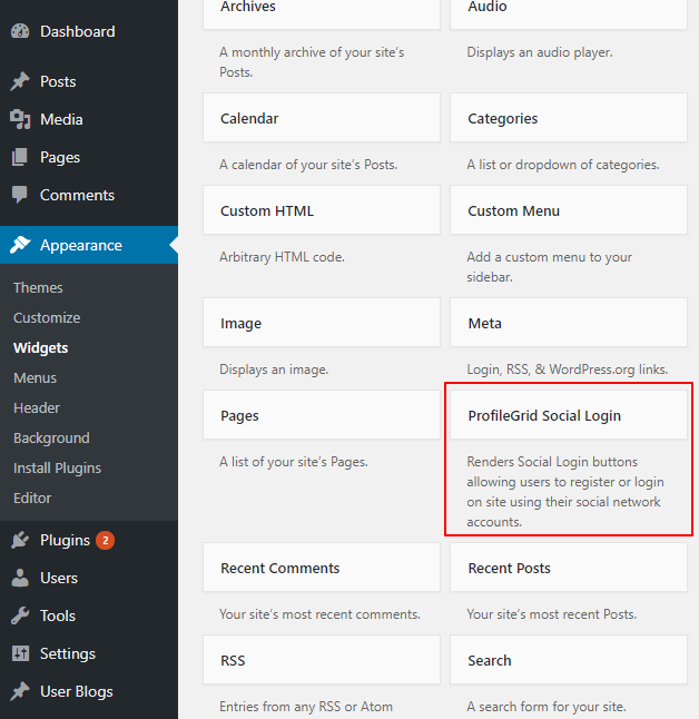 - Adds a 'ProfileGrid Social Login' widget that can be placed at any location of your choice on the site