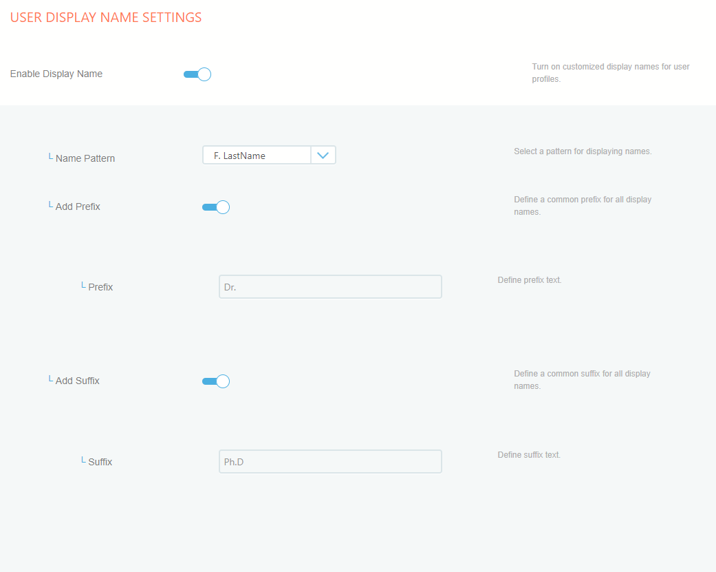 Now take complete control of your users' display names. Mix and match patterns and add predefined suffixes and prefixes. There's a both global and per group option allowing display names in different groups stand out!
