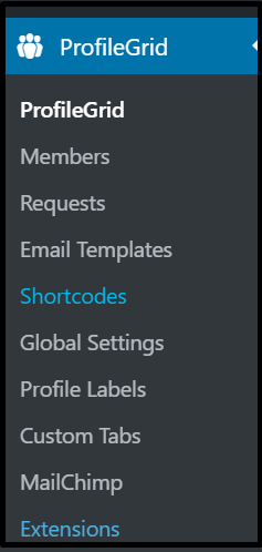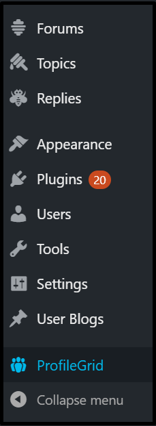 Step2: Click on ProfileGrid and you will see a drop-down menu.