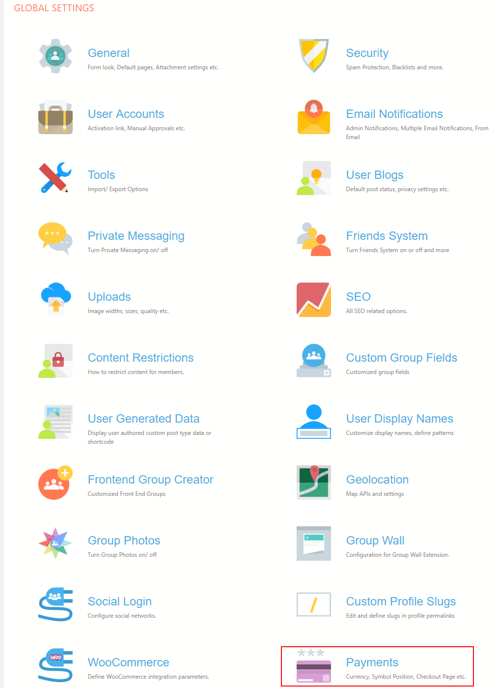 To help you build a membership site using PayPal, ProfileGrid provides a Payment Setting feature. You can easily activate it by going to the Global Settings page found under the ProfileGrid menu.