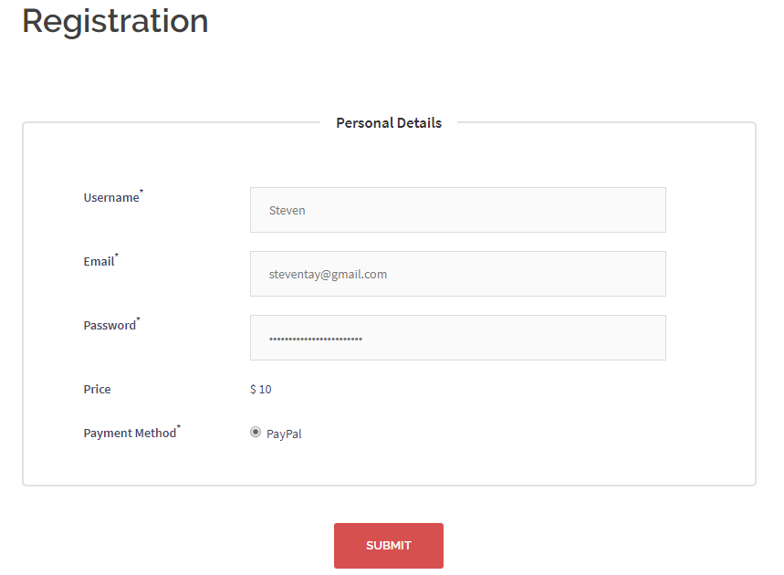 The image above shows the registration page for the paid group, displaying PayPal as the payment method. Once the user submits the form, they will be automatically redirected to the PayPal Payment page. After entering their card details, the payment will be sent directly to the admin’s PayPal account.