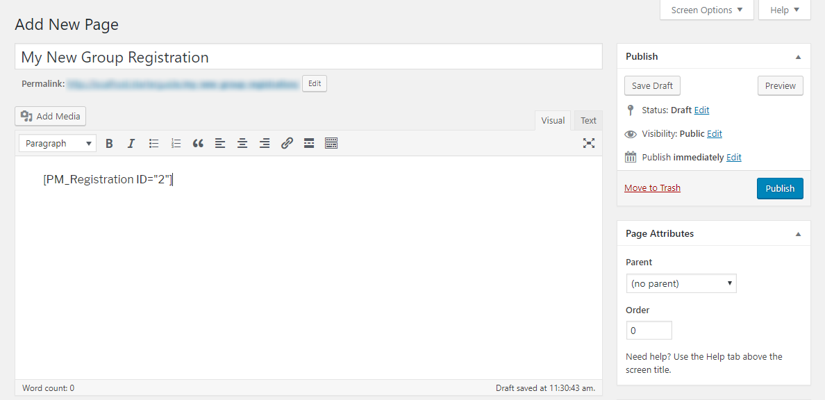 Activating group registrations from the front-end is pretty straightforward. All you need to do is create a new WordPress page, and in its content area, add this shortcode: [profilegrid_register gid=”3″]