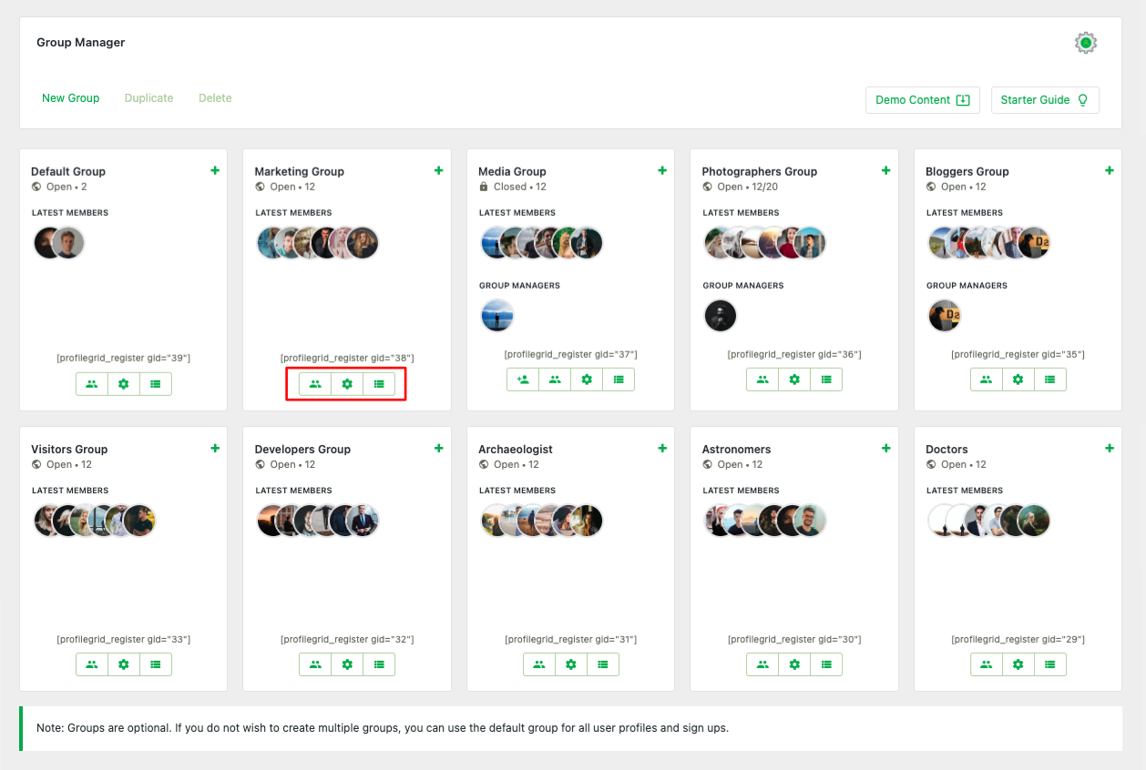 2.) Click on ProfileGrid >> All the Group card will appear