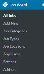 Firstly, right after installation, this plugin opens up its own list of options named the Job Board. Secondly, this is the place where the users get all the necessary fields to create new jobs, add categories, locations, and job types. Finally, the Applicant option allows the admin of the website to check the number of applicants who applied for the various job roles.